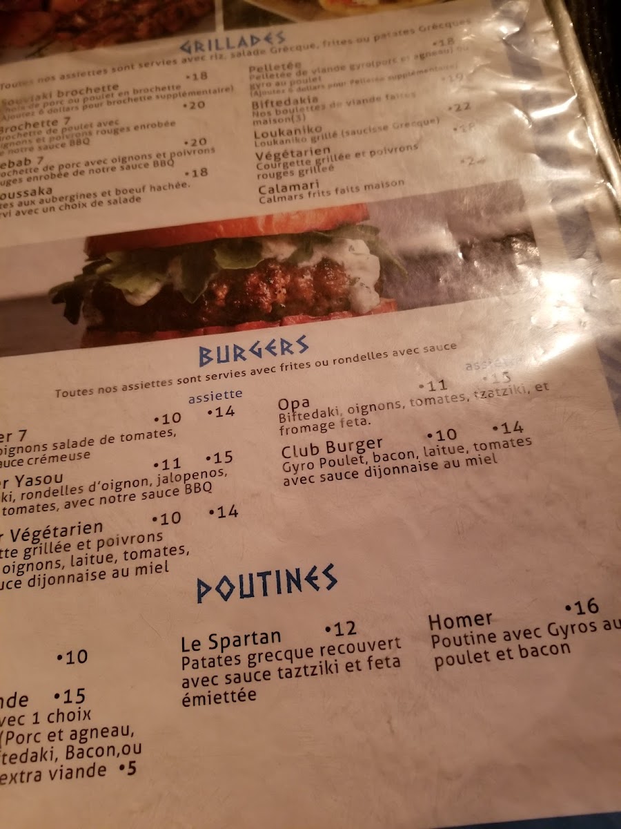 Restaurant Souvlaki 7 St-Sauveur Menu